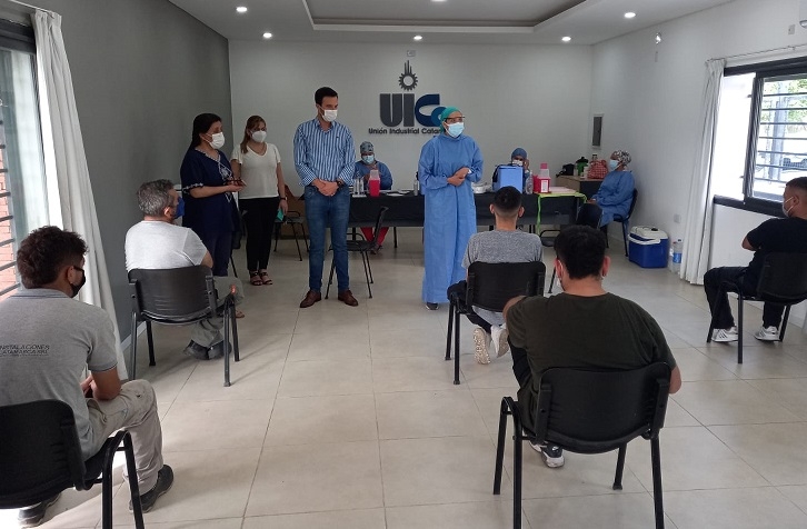 Según las evaluaciones con las empresas industriales, las que dieron cuenta de que una importante cantidad de trabajadores no cuenta con el esquema completo de vacunas contra el Covid-19, el ministro Álvarez gestionó ante su par de Salud la instalación de nodos en los lugares mencionados, y hoy se comenzó con un significativo número de vacunados.