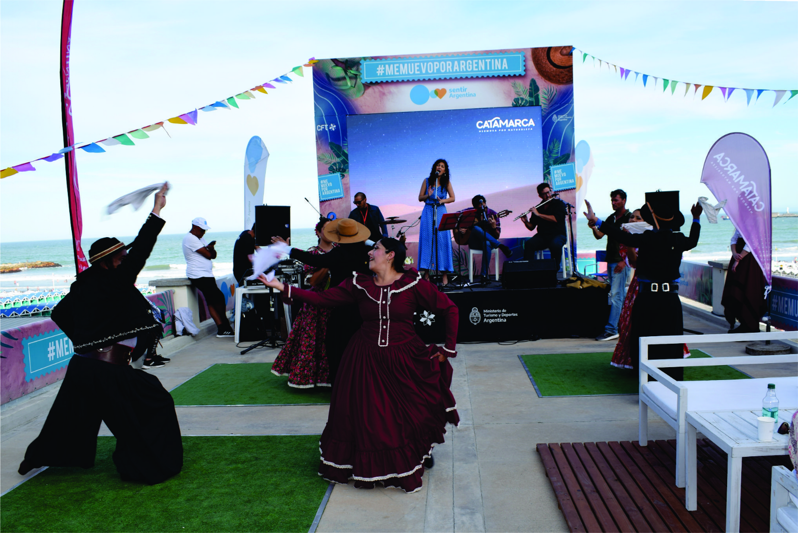La terraza de “Playa Grande” fue el escenario donde los que se acercaban pudieran disfrutar de nuestras bellezas y experiencias turísticas mediante videos y promoción que se realizó con informantes turísticos, además la oportunidad fue importante con la presencia del ballet Semblanzas, que con la coordinación del Prof. Pablo Segovia, los bailarines Gabriela Cano, Carolina Pons, Rocío Toro, Miguel Romero y José Luis Romero, desplegaron todo su arte lleno de zarandeos y zapateos que fue seguido con entusiasmo por todos los presentes. Además, hubo sorteos de estadías en nuestra provincia y bolsones con merchandising.