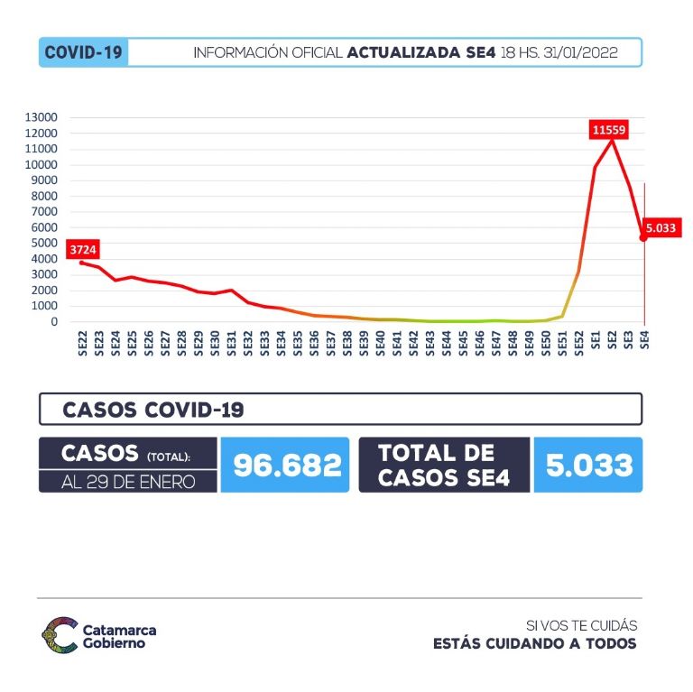 Teniendo en cuenta la sumatoria de nuevos casos y a las personas recuperadas o fallecidas, hasta el cierre de la Semana Epidemiológica N°4, 9918 casos se consideran activos. En la semana Epidemiológica N°4 se registraron 5033 contagios.
