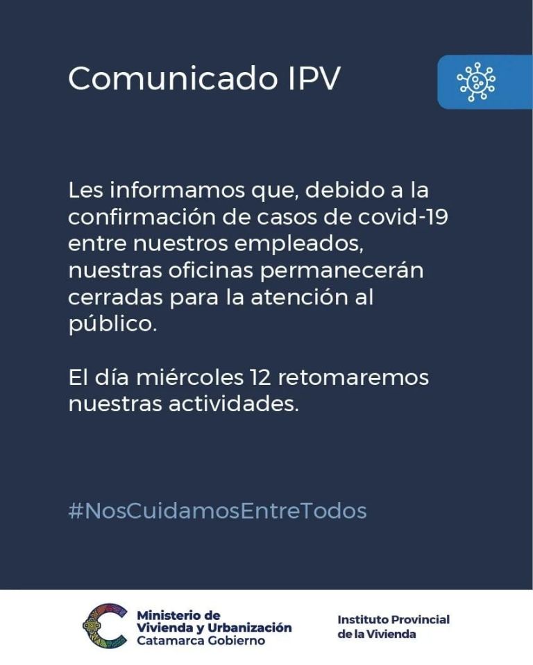 Ante los casos positivos de Covid-19 confirmados a empleados del Instituto Provincial de la Vivienda, las autoridades resolvieron cerrar las oficinas del CAPE y suspender la atención al público hasta el próximo miércoles 12 de enero.