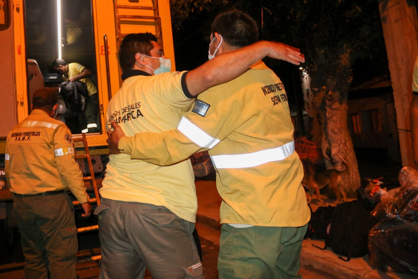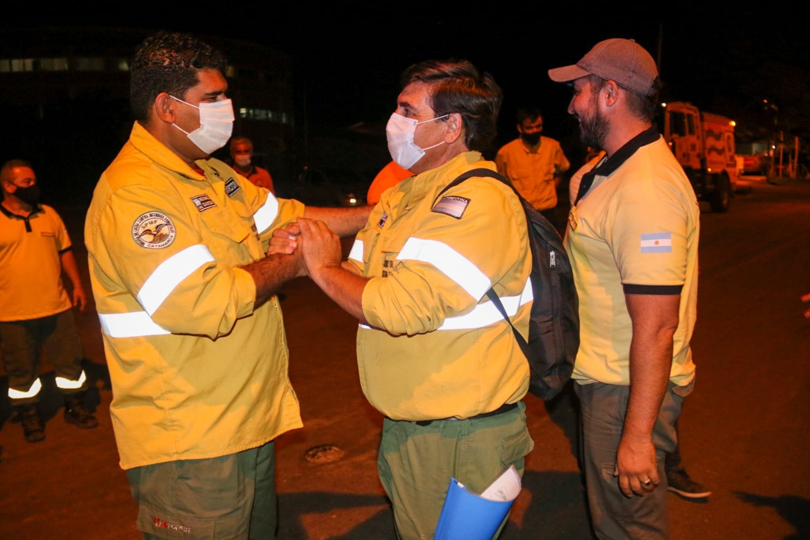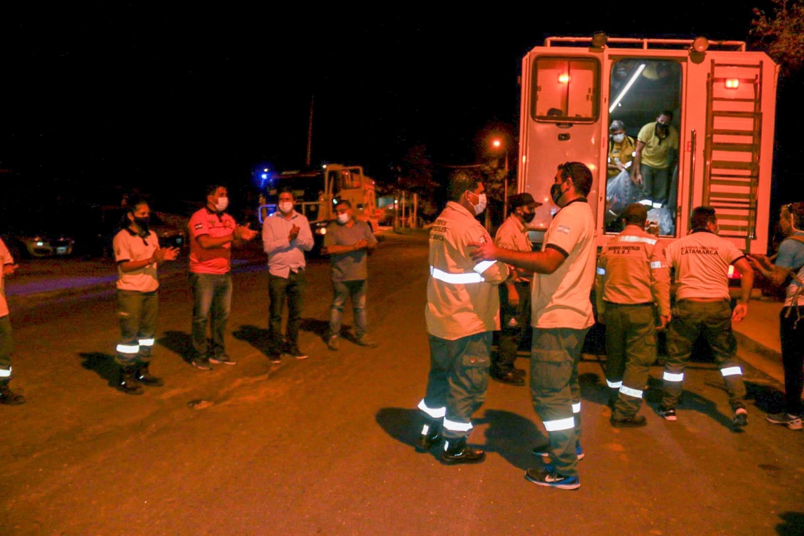 En la Base Operativa de Defensa Civil, el ministro de Seguridad, Gustavo Aguirre, acompañado por el director de Defensa Civil, Martín Castelli y el director de Incendios Forestales, Eric García y familiares le brindaron una cálida bienvenida a los brigadistas que desde el 23 de diciembre estuvieron prestando colaboración para sofocar el incendio forestal que se desarrollaba en el cerro Currumahuida, provincia de Chubut.