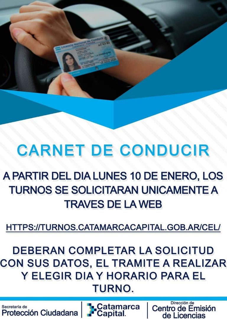 Desde el día lunes 10 de enero, los turnos para todas las licencias se solicitarán únicamente de manera online, la solicitud deberá ser gestionada a través de la siguiente página web