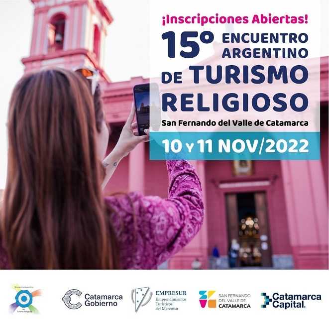 El 15to. Encuentro Nacional de Turismo Religioso tendrá como sede el Cine Teatro Catamarca, frente a la plaza principal de la ciudad de San Fernando del Valle de Catamarca. Todos los detalles del evento, incluido el programa, lo pueden encontrar en www.sfvc.travel/encuentro-turismo-religioso/, donde también los interesados podrán inscribirse gratuitamente, o directamente a través de la plataforma “Eventbrite”. No obstante, para el día del evento, se solicitará a los inscriptos un alimento no perecedero, el cual será donado a instituciones de bien público.