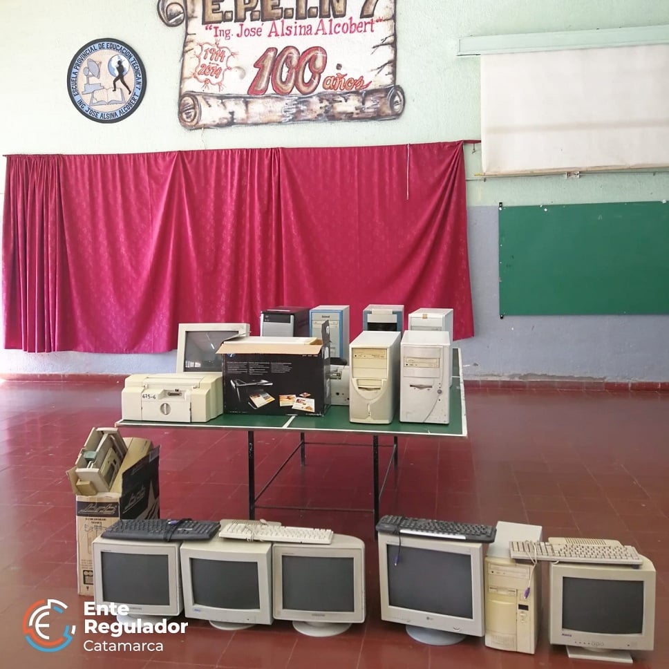 El equipamiento, integrado por PC’s, monitores, e impresoras; fue recibido por la Directora del establecimiento Prof. Estela Perea, quien agradeció la donación a las autoridades del Ente Regulador.