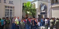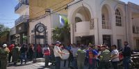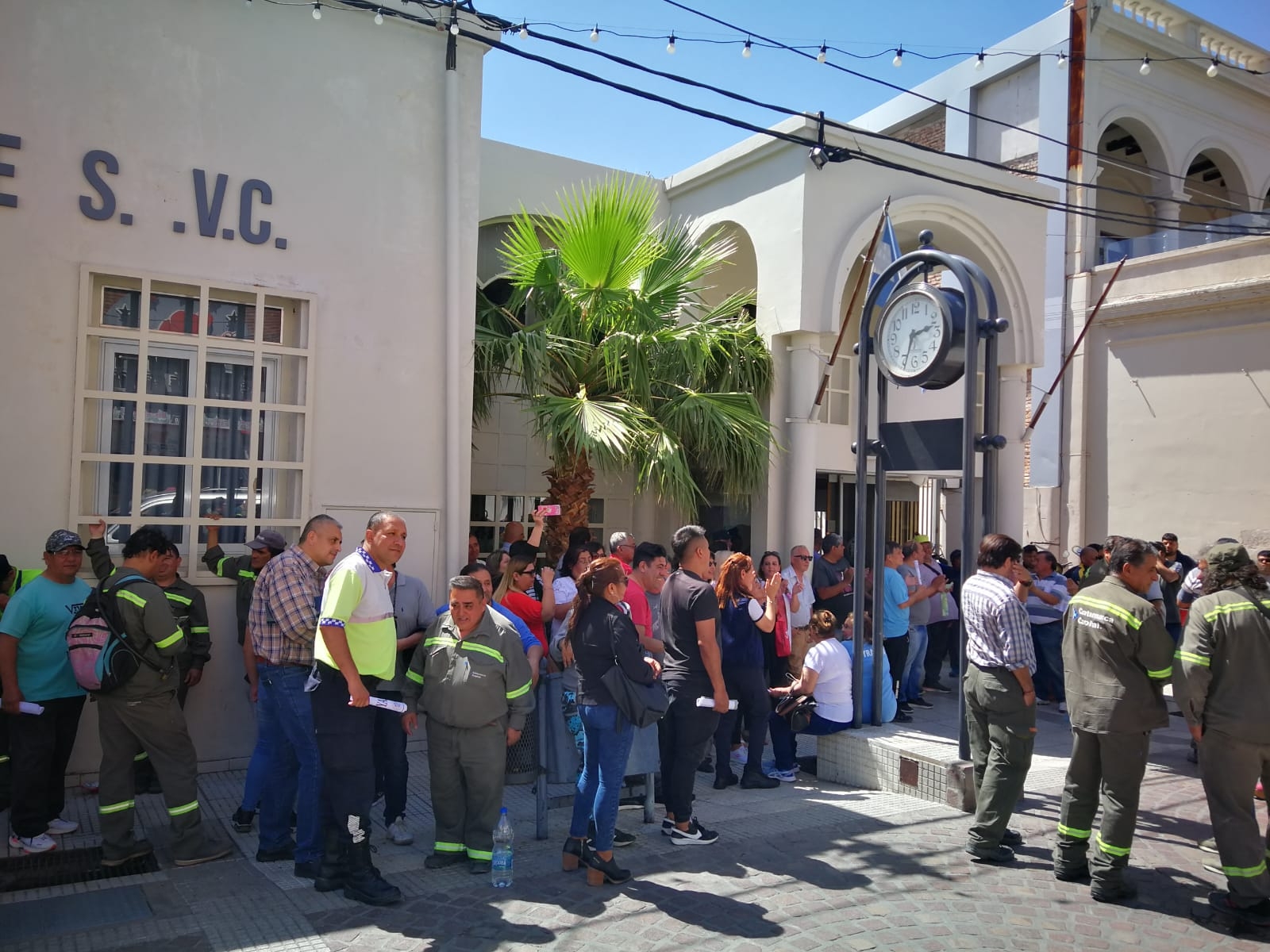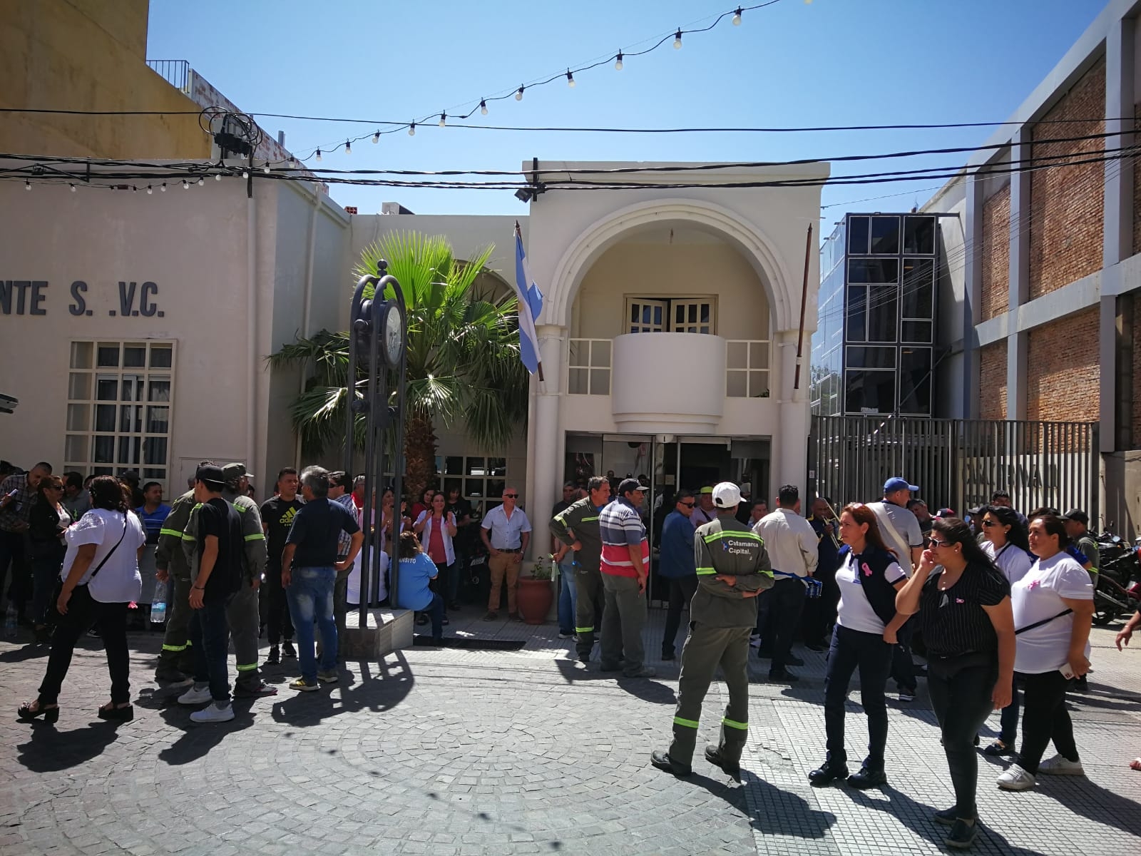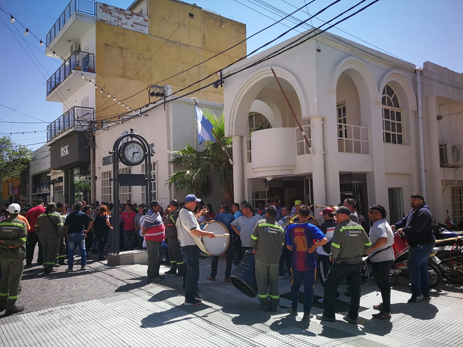 Trabajadores municipales conjuntamente con el gremio SOEM se manifiestan frente al Concejo Deliberante de la Capital para que se trate y apruebe un proyecto que otorga un premio para empleados con 40 años de servicio y las horas extras para la categoría 10 y 11.