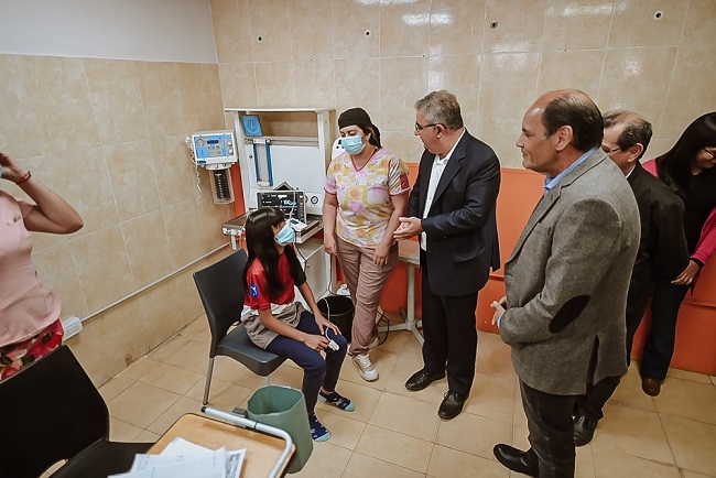 Raúl y Gustavo compartieron unos minutos con los pequeños que se encontraban, algunos desayunando, y a otros pequeños se les realizaban chequeos oftalmológicos, análisis clínicos o se les completaba el calendario de vacunación.