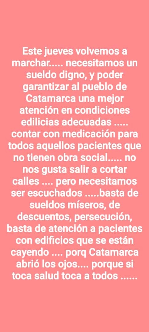 Anunciaron que mañana se autoconvocarán a las 9 de la mañana en La Alameda desde donde partirán en una marcha conjuntamente con trabajadores de los centros asistenciales de Capital y del interior de la provincia.