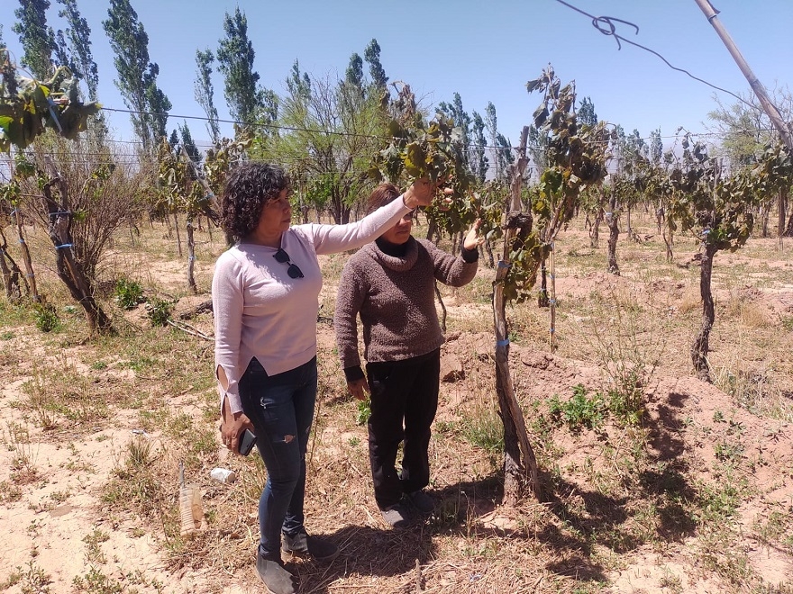 Roxana explicó que la primera medida que tomó el Municipio fue visitar a los productores y realizar inmediatamente un relevamiento de la superficie afectada, así como de la variedad de uvas que han sido más dañadas, tanto como consumo en fresco, como lo que es pasa y obviamente la cereza.