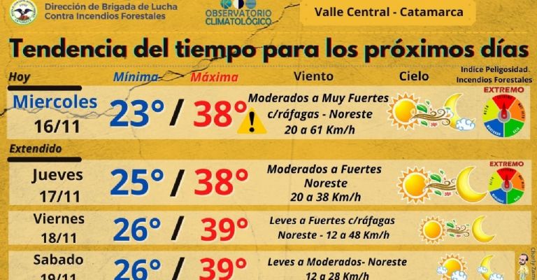 El área será afectada por vientos del sector norte con velocidades entre 30 y 50 km/h, con ráfagas que pueden superar los 70 km/h.