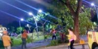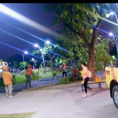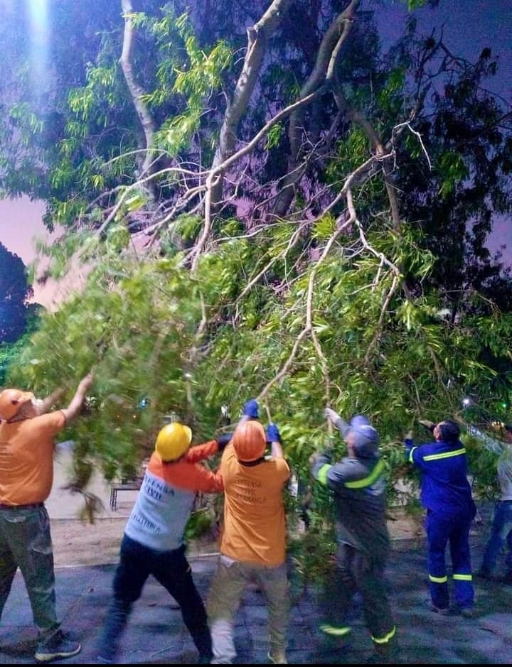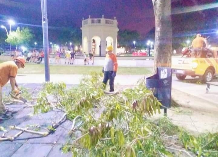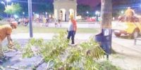 Personal de Defensa Civil concurrió anoche a la Plaza de La Alameda donde por efecto del viento, cayó un árbol.