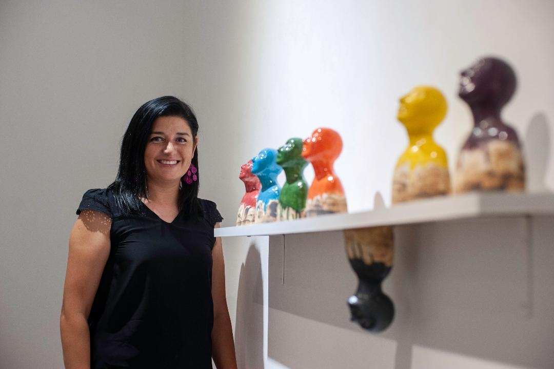 La directora de Patrimonio y Museos, Laura Maubecín -junto a la responsable del Museo de Bellas Artes, Gabriela Brouwer- acompañó la inauguración de la muestra y valoró su calidad artística: “Microrrelatos expresa las emociones que muchos sentimos en pandemia y que en Estela se transformaron en arte”.