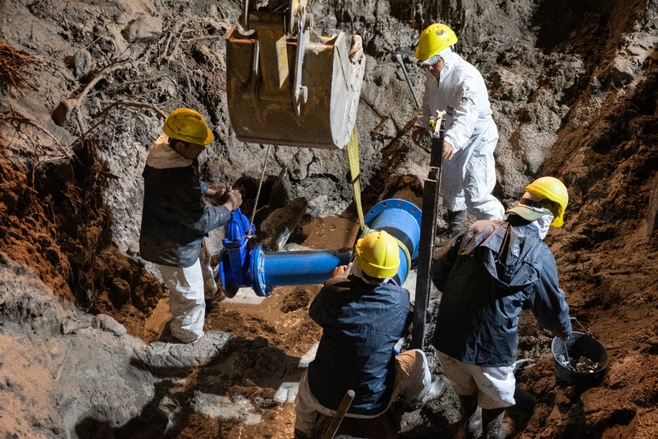 Se trata de uno de los tramos claves de esta mega obra que permitirá, a través del denominado nudo 3, distribuir agua potable para más de 100 mil vecinos de la Capital.