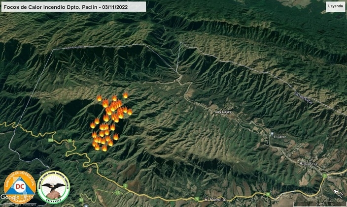 • Dpto. Paclin –incendio en la localidad de las Higueras límite con la Prov. de Tucumán. Combustible afectado pastizal y arbustal. Estado del incendio ACTIVO.