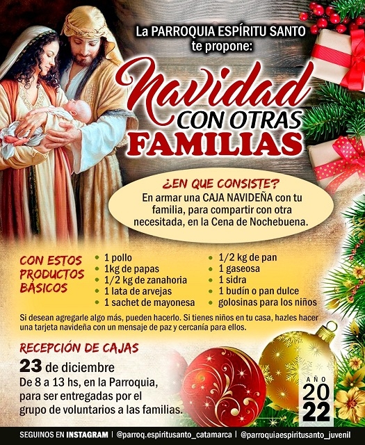 “No queremos dejar pasar este año sin este último gesto de amor y solidaridad a las familias que más lo necesitan. Compartir una cajita navideña con otra familia sería un hermoso regalo para el Niño Dios”, expresaron desde la comunidad parroquial.