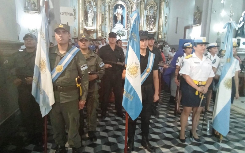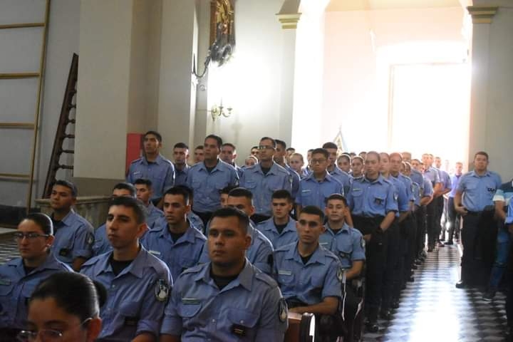 La Santa Misa fue presidida por el padre Sergio Chumbita, y concelebrada por capellanes de las fuerzas de seguridad, Pbros. Reinaldo Oviedo, Humberto Carrizo, Guillermo Chanquía, Esteban Chaile, Héctor Salas, Dardo Olivera, el Capellán Mayor del Servicio Penitenciario Federal Pbro. Gustavo Esteche, y el Pbro. Raúl Pereyra, estos dos últimos de la Diócesis de Merlo-Moreno.