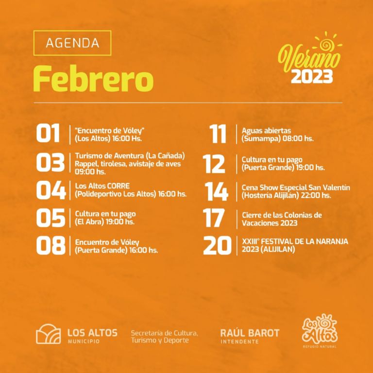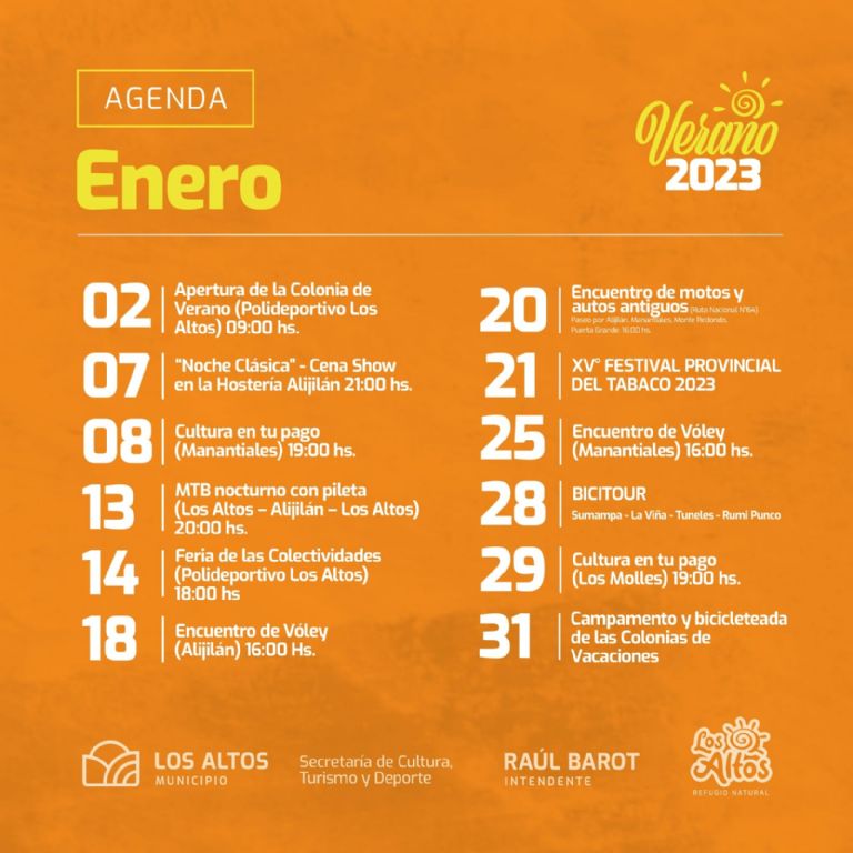 La Municipalidad de Los Altos, que conduce el intendente Raúl Barot, presentó la agenda de actividades culturales, deportivas y artísticas para la temporada del verano 2023-