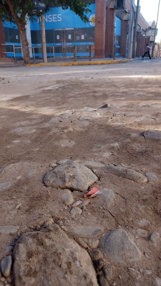 "Aunque parezca increíble, esto es Ayacucho frente al Anses. Se hizo una supuesta obra hace casi un mes, dónde cavaron 3 metros de profundidad toda la cuadra (Ayacucho desde San Martin hasta República), al día de hoy, son los autos que pasan y compactan los "cráter" que dejaron. Pero no sé trata de estética nada más, con esta "obra", al igual que aquella vez que robaron alta tensión de San Martin y Ayacucho para llevarla a los hoteles de los dueños de Catamarca en la alameda, nos trajo plaga de alacranes y del venenoso, y un tierral que no solo padecen los vecinos y trabajadores de la zona, sino también la gente que viene al Anses.