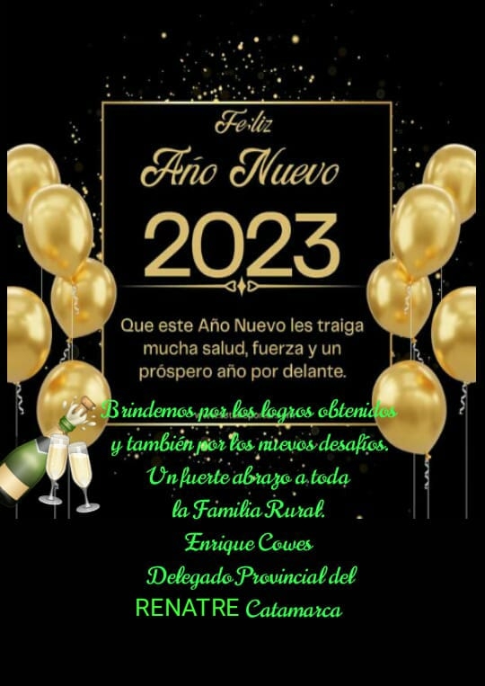 El delegado provincial de RENATRE Enrique Cowes, saluda en esta fiesta del Año Nuevo a toda la familia Rural