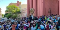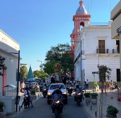 Frente a la capilla Santa Teresita, ubicada en Av. Güemes y Ayacucho, la esperaba un importante número de vecinos del sector sur capitalino que se congregó para aclamar su paso, portando banderines papales y argentinos, junto a la imagen de la Santa Patrona.
