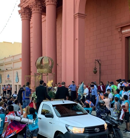 A pesar del intenso calor reinante, vecinos salieron a su paso para saludarla a lo largo del trayecto que se extendió por poco más de una hora, por calle Sarmiento, Av. Belgrano hacia el oeste, Av. Virgen del Valle hacia el sur, Av. Güemes hacia el este y Av. Alem hacia el norte, hasta llegar al óvalo del parque Adán Quiroga donde estaba el trono desde el cual continúa recibiendo el homenaje de sus hijos devotos en estas fiestas.