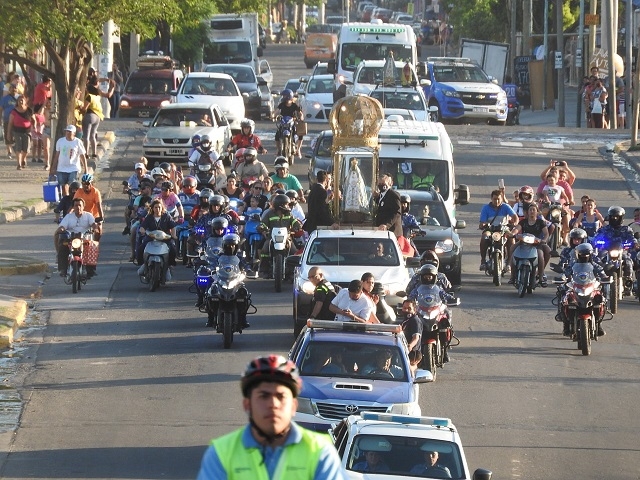 Jóvenes peregrinos apostados en el paseo General Navarro más conocido como La Alameda, donde fue coronada hace 131 años, y en la plaza 25 de Agosto se sacaban su gorra en señal de reverencia a la Madre, otras personas se persignaban y todos los que pudieron gozar de verla por las calles de la ciudad, derramando bendiciones, expresaban su amor filial. Sus rostros evidenciaban la profunda emoción por el encuentro con la Madre, muchos de ellos de rodillas.