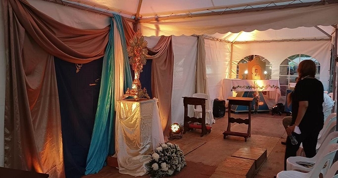 Quedó inaugurado el martes 6, luego de la Misa de homenaje de los niños con un momento de adoración. Luego la Custodia con el Santísimo Sacramento fue llevada a esta Capilla de campaña donde está el Sagrario para la reserva de las Hostias Consagradas.