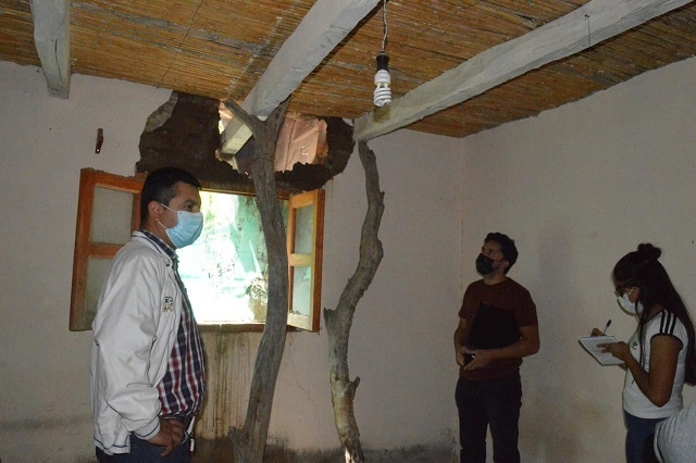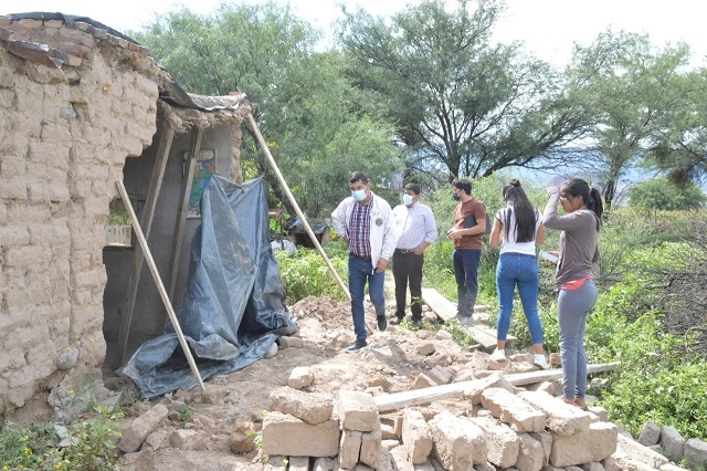 Según se precisó, visitaron a familias en El Cerrito, Paraje Las Rosas, Barrio Chacarita que sufrieron el derrumbe de pared y techo de vivienda; en el barrio Chacarita, El Recreo, Avda Fausto Toranzos y Vicente Saadi, a quienes sufrieron derrumbes de paredes y techos, paredes agrietadas con humedad y rotura de varas y viguetas. En El Recreo a la familia Benítez se le derrumbó completamente el sector de cocina y posee paredes agrietadas con mucha humedad.