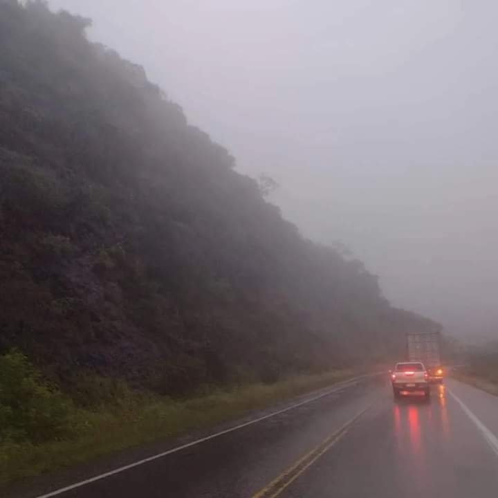 En la Cuesta del Totoral transitar con precaución por visibilidad reducida por niebla y lluvia. Reducir la velocidad habitual.