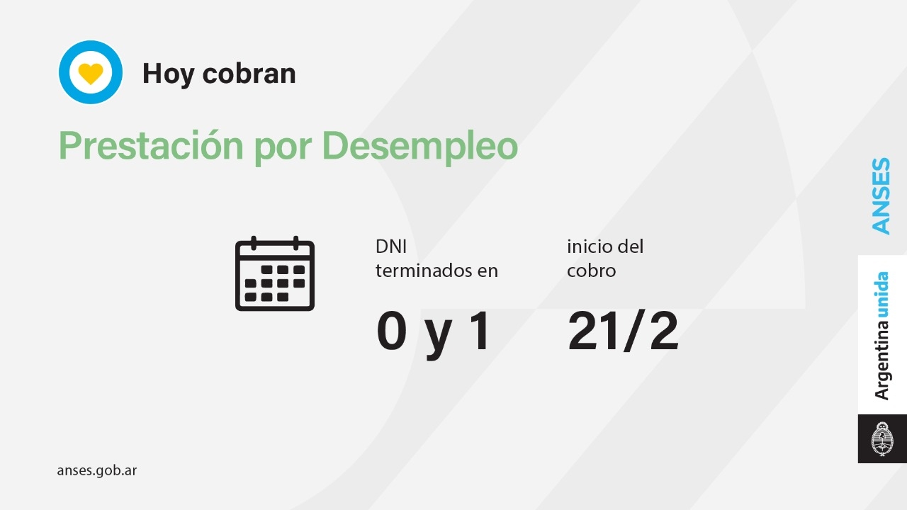 Hoy perciben la Prestación por Desempleo las personas con documentos terminados en 0 y 1.