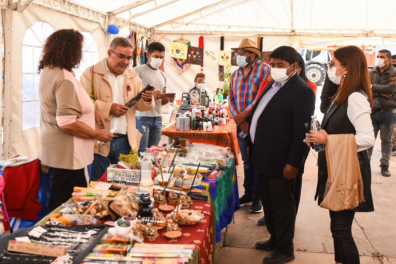 Posteriormente, Raúl junto al equipo se trasladaron hasta el predio donde se desarrolló la 31ª edición de la Feria de la Puna. En el lugar, recorrieron los pabellones donde se exhibieron los distintos productos y artesanías de alfareros, gastronómicos, especieros, hilanderos, olivícolas, además de productos de higiene eco sustentable, anilleros, cuchillería.