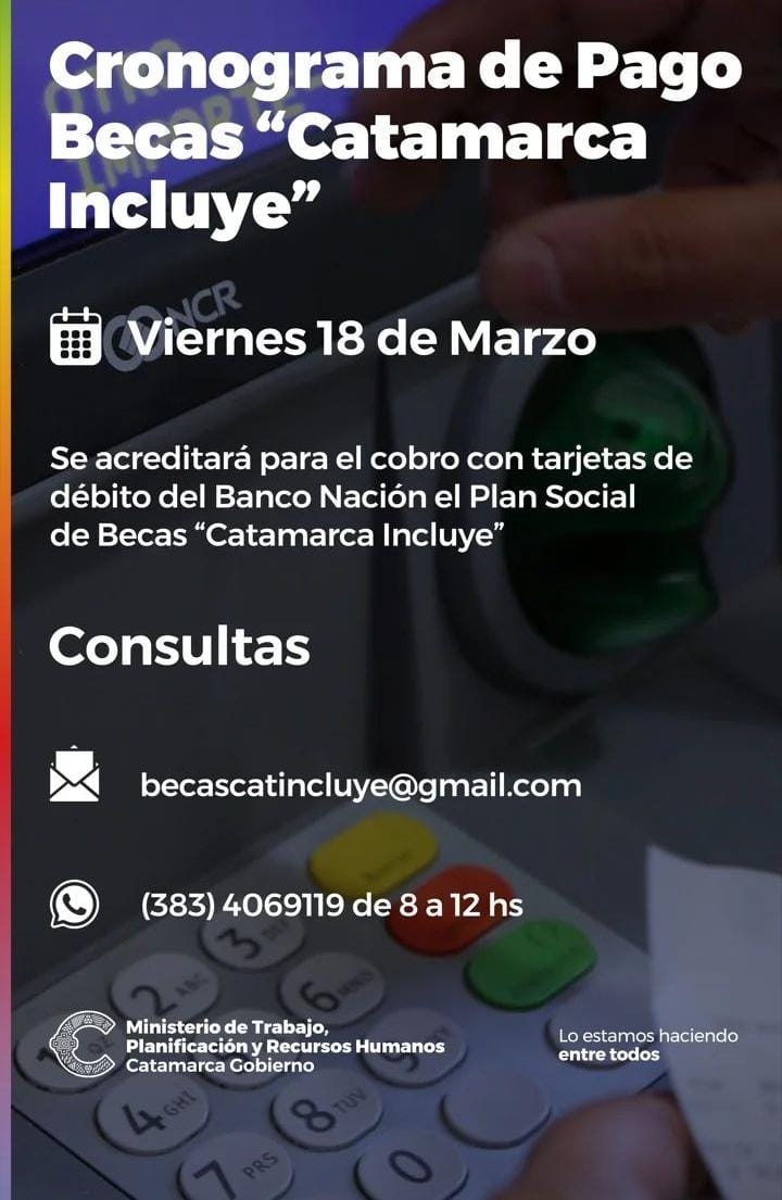 Confirmado el pago de las becas "Catamarca Incluye", para el próximo viernes 18 de marzo.