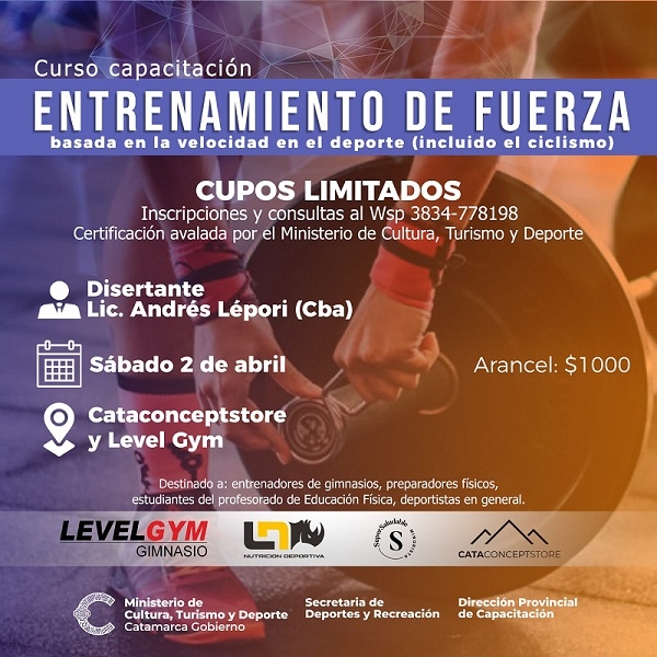 La capacitación tendrá un arancel de $1000 y se desarrollará el sábado 2 de abril en Level Gym y Cataconceptstore. Contará con una parte teórica y una práctica, y con una charla sobre alimentación y suplementación a cargo del nutricionista Zeta Nieto.