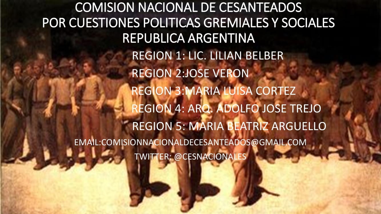 La Comisión Nacional de Cesanteados por cuestiones Políticas Gremiales y Sociales, a 46 años del Golpe Cívico Militar, adhiere una vez más, al recordatorio, de tan nefasta fecha para el Pueblo Argentino y reafirma continuar la Lucha de Reparación Histórica, para quienes hemos sido Víctimas de Crímenes de Lesa Humanidad, como lo encuadra el Estatuto de Roma de la Corte Penal Internacional en sus Art. 7(1)h,7(1)i,7(1)k.