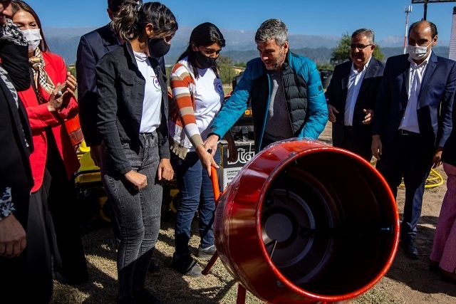Finalmente, culminando la agenda en la Plaza El Aborigen se procedió a la entrega de insumos y maquinarias del Programa Banco de Materiales y Herramientas a 70 emprendedores del departamento Valle Viejo.