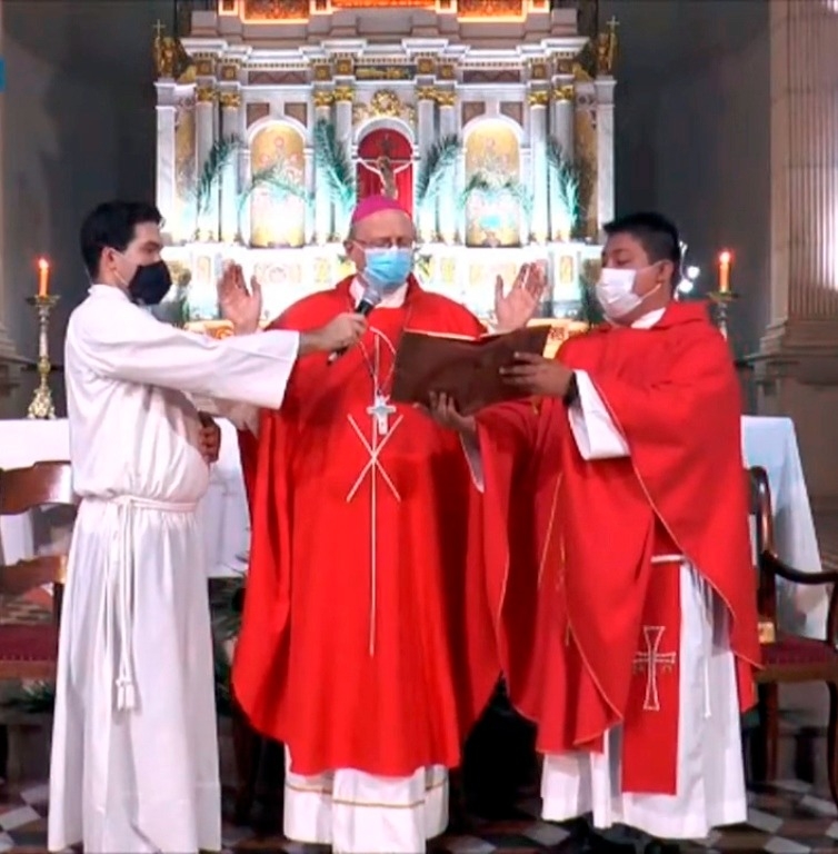 La ceremonia litúrgica, que fue transmitida a través de las redes sociales con legua de señas, dio inicio con la bendición de los ramos en el atrio del templo, tras lo cual se inició la procesión por la nave central.