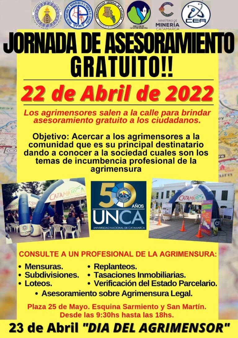 El 23 de abril se celebrará, como cada año, el Día del Agrimensor, por lo que el viernes 22 próximo, los agrimensores llevarán a cabo una Jornada de Asesoramiento Gratuito en la plaza 25 de mayo de la ciudad Capital.