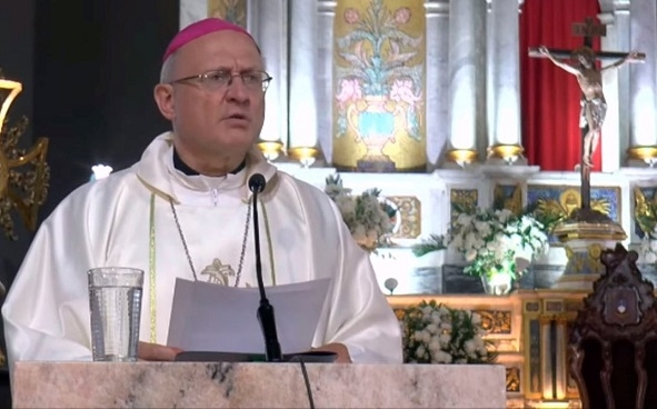 Durante su homilía, Mons. Urbanc afirmó que “en esta noche somos invitados a contemplar la obra de Dios, Padre, Hijo y Espíritu Santo, que salva a todos los que creen en Jesucristo. Es una noche para hacer memoria, agradecer, creer en el amor de Dios y amar. Y es vital porque haciendo memoria es como recuperamos la Esperanza; porque la Esperanza se alimenta de la memoria de las acciones de Dios en nuestra vida”.