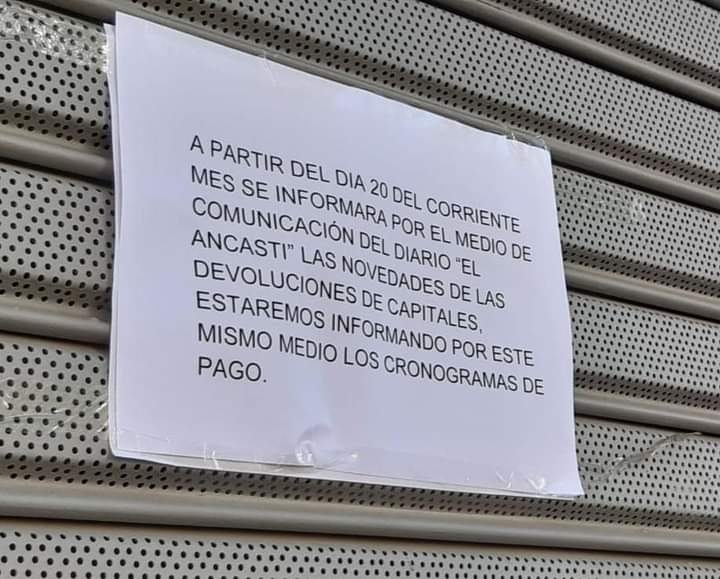 A pesar que ayer un cartel comunicaba que hoy se atenderia al público, los ahorristas que concurrieron este martes encontraron la sede de la financiera cerrada.
