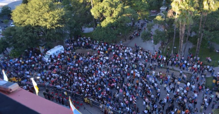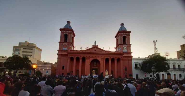 Y luego de la bendición final con el Santísimo, mientras las campanas echaban a vuelo, la Sagrada Imagen ingresó al templo, donde a las 20.00 se celebrará la Santa Misa de homenaje de los medios de comunicación social.