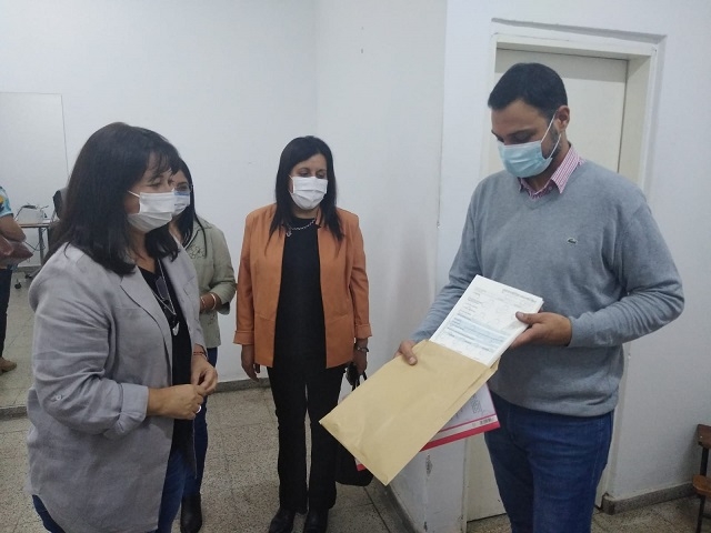 Además, la directora provincial de Asistencia Integral a Personas con Discapacidad, Cecilia Moreno, hizo entrega de protocolos para la evaluación, planillas correspondientes a cada tipo de enfermedad y discapacidad, papel moneda que es con el que se realiza la certificación, y una computadora.