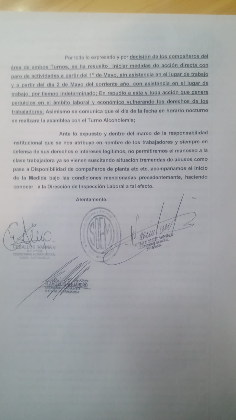 Para el gremio, la sanción es “arbitraria, verticalista e improcedente con la intención de callar a quien intenta levanta la mano en reclamo directo de situaciones”.