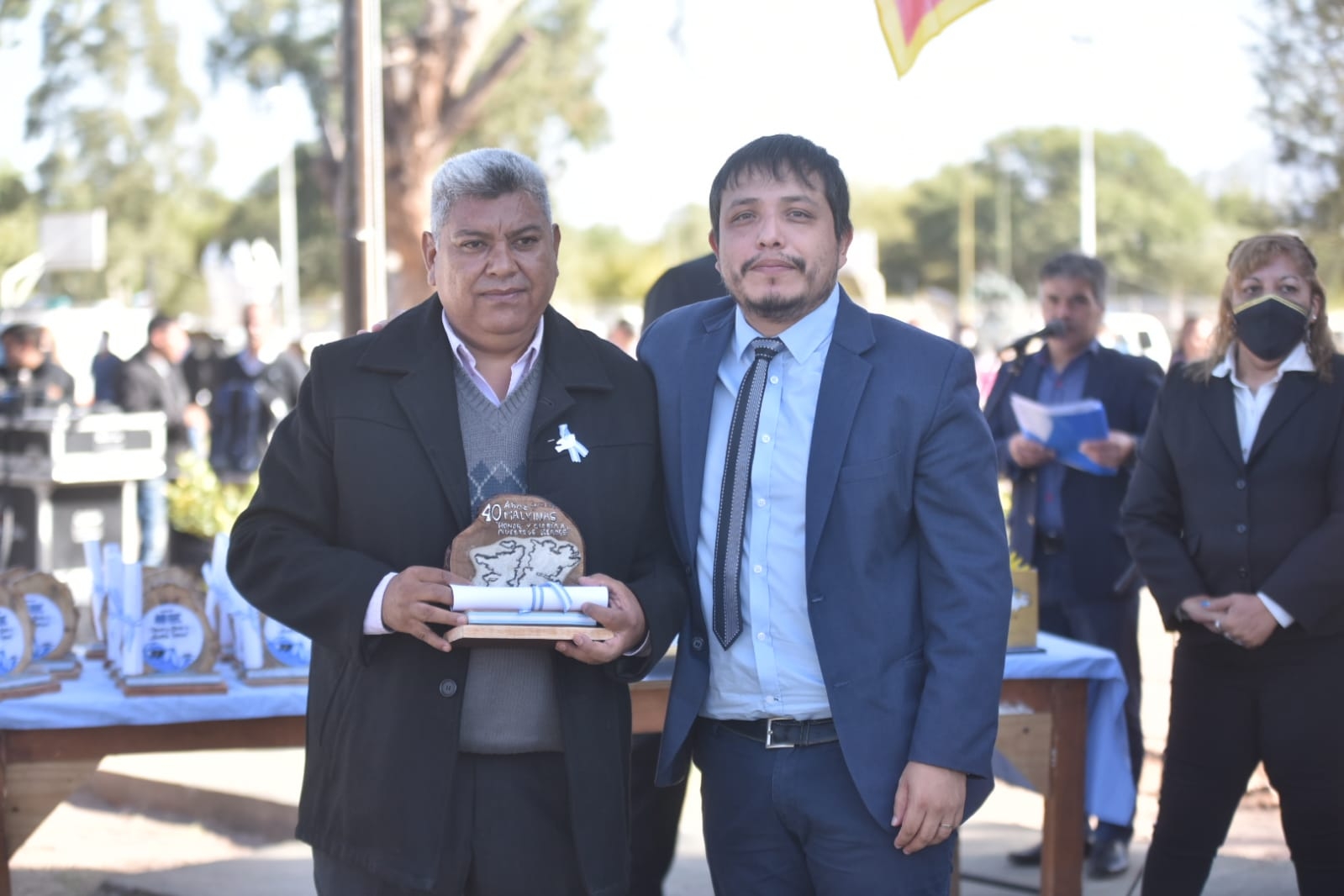 El intendente, felicitó a la docente, la Prof. Prof. Silvia Morales por su investigación sobre la vida de Carlos Alberto Valdez nacido Copacabana y quien dejó su vida en el hundimiento del ARA Belgrano.