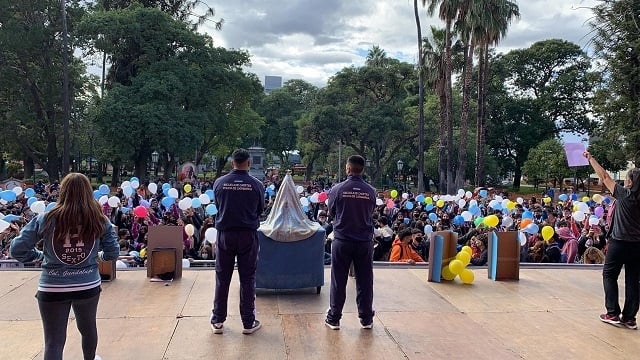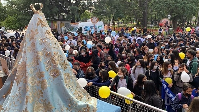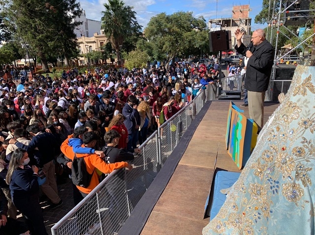 Con dinámicas, coloridos globos, cantos y mucha alegría, los chicos de instituciones educativas de Capital animaron este tributo a la Reina del Valle, que salió al encuentro de sus hijos.