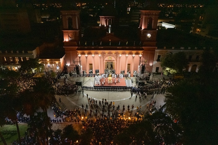 Una vez en el Paseo de la Fe, frente a la Catedral Basílica, el Obispo Diocesano Luis Urbanc presidió la solemne celebración religiosa.