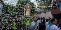 La parroquia Santa Rosa de Lima y Vialidad Provincial se sumaron a esta fiesta de fe mariana con lluvias de papelitos, globos y gallardetes que pusieron color y alegría al paso de la Madre.