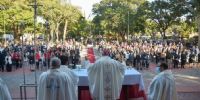 La celebración eucarística tuvo lugar en la explanada ubicada enfrente del histórico templo de San José, y fue solemnizada por el coro Cantus Nova, dirigido por el Prof. Ariel Escobal.