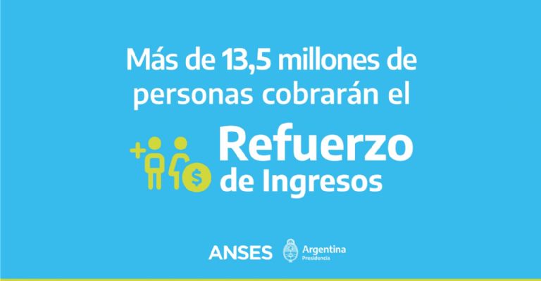 Durante el mes de mayo el Refuerzo de Ingresos será percibido por más de 13.6 millones de personas. Siendo más de 6.1 millones jubilados y pensionados que ya lo están cobrando en forma automática junto con su haber. Y casi 7.5 millones de trabajadores y trabajadoras informales, de casas particulares, monotributistas A o B y monotributistas sociales que lo estarán percibiendo desde el 19 de mayo.