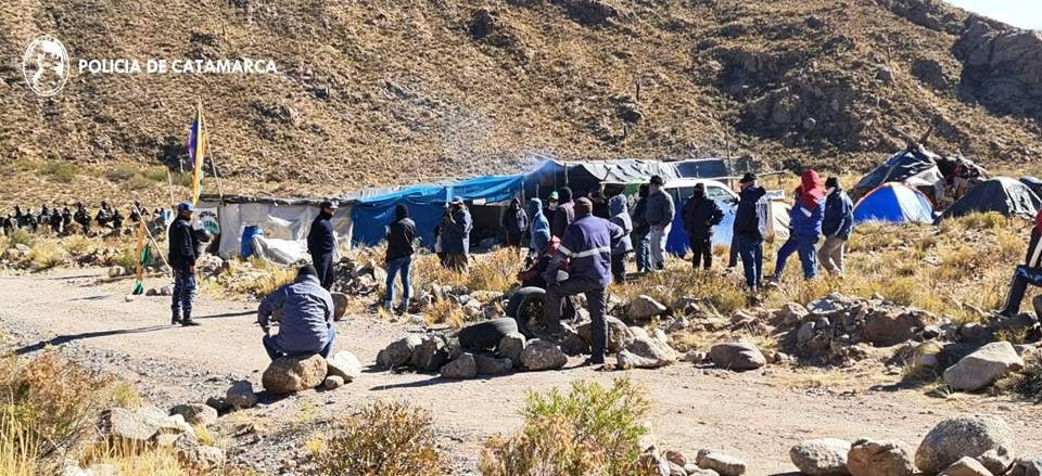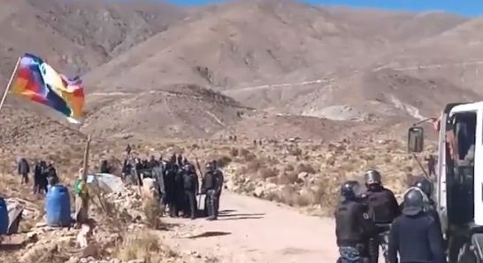 Luego de entablar un diálogo con los protestantes, personal policial pudo constatar que estas personas tenían elementos incendiarios de fabricación casera (bombas molotov) gomeras y piedras, lo que motivó iniciar un procedimiento para resguardar la integridad física tanto de los empleados mineros, transportistas y los propios manifestantes.