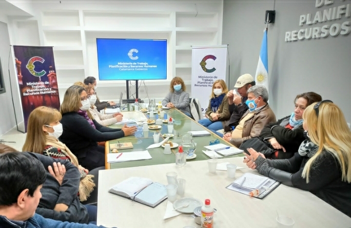 Participaron de la reunión la subsecretaria de Medicina Laboral, María Luisa Miranda; la subsecretaria de Legal, Técnica y Administrativa, Josefina Frías; la directora Provincial de Liquidación de Haberes Docente, María Silvina Quinteros, y los representantes de los gremios docentes ATECA, SADOP, SIDCA, SUTECA y UDA.
