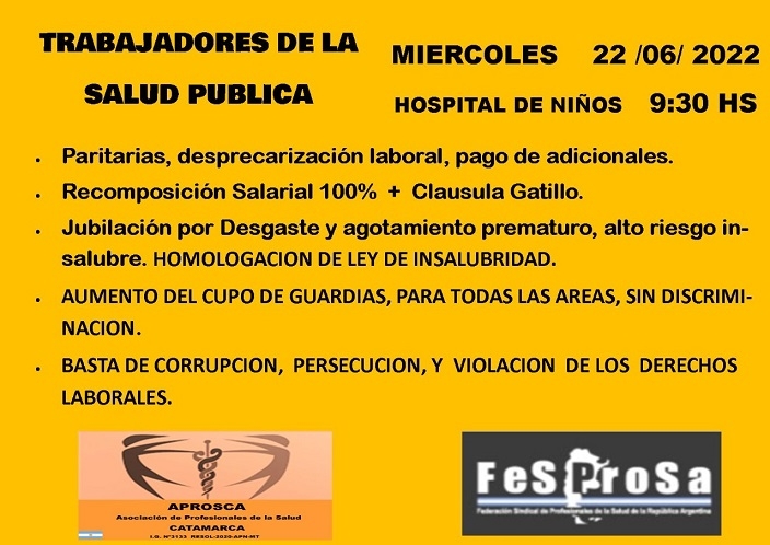 En votación de los trabajadores de salud pública, se resolvió convocar a un paro de actividades para el próximo miércoles 22 de junio en todos los centros asistenciales del Estado.